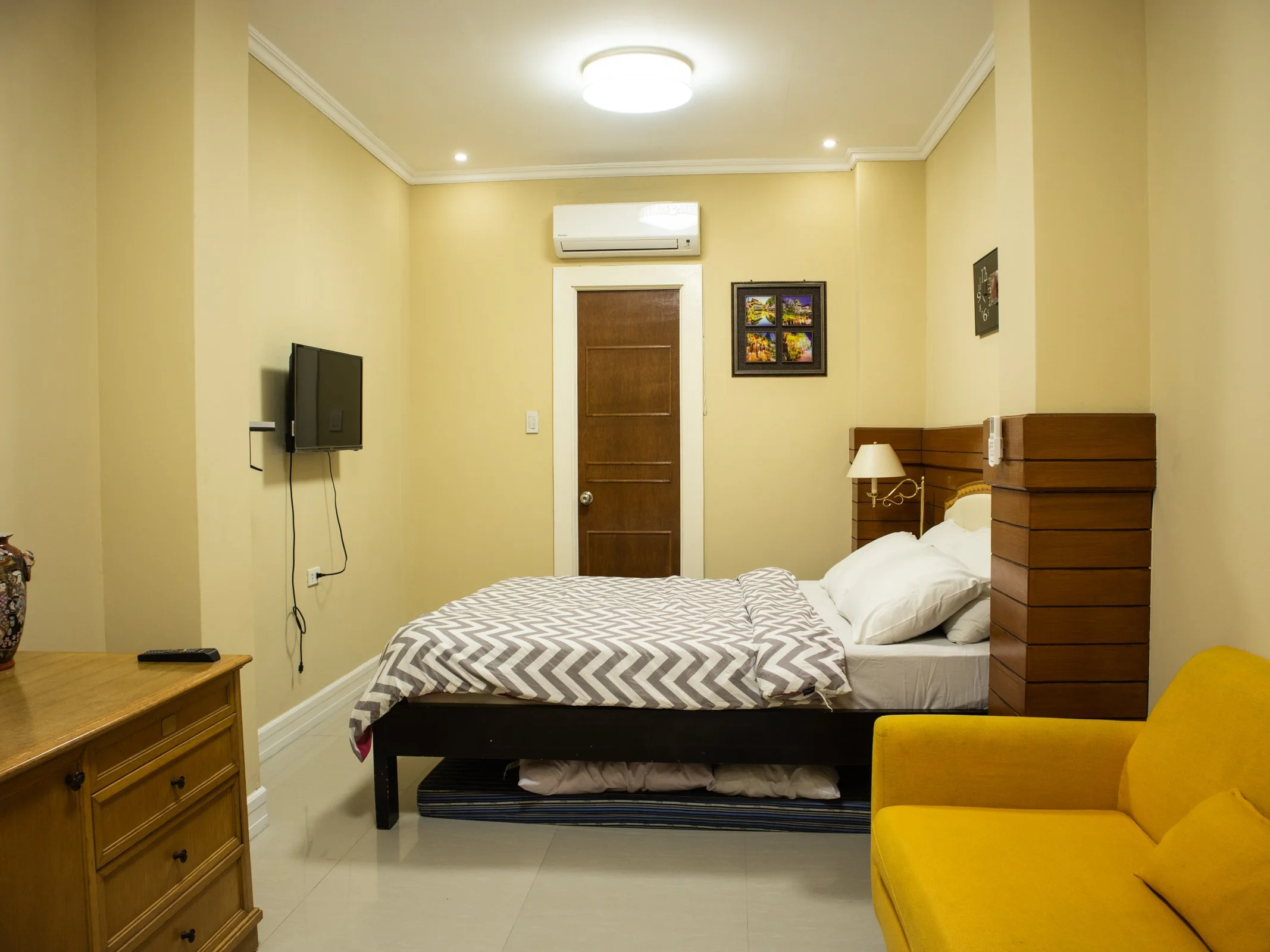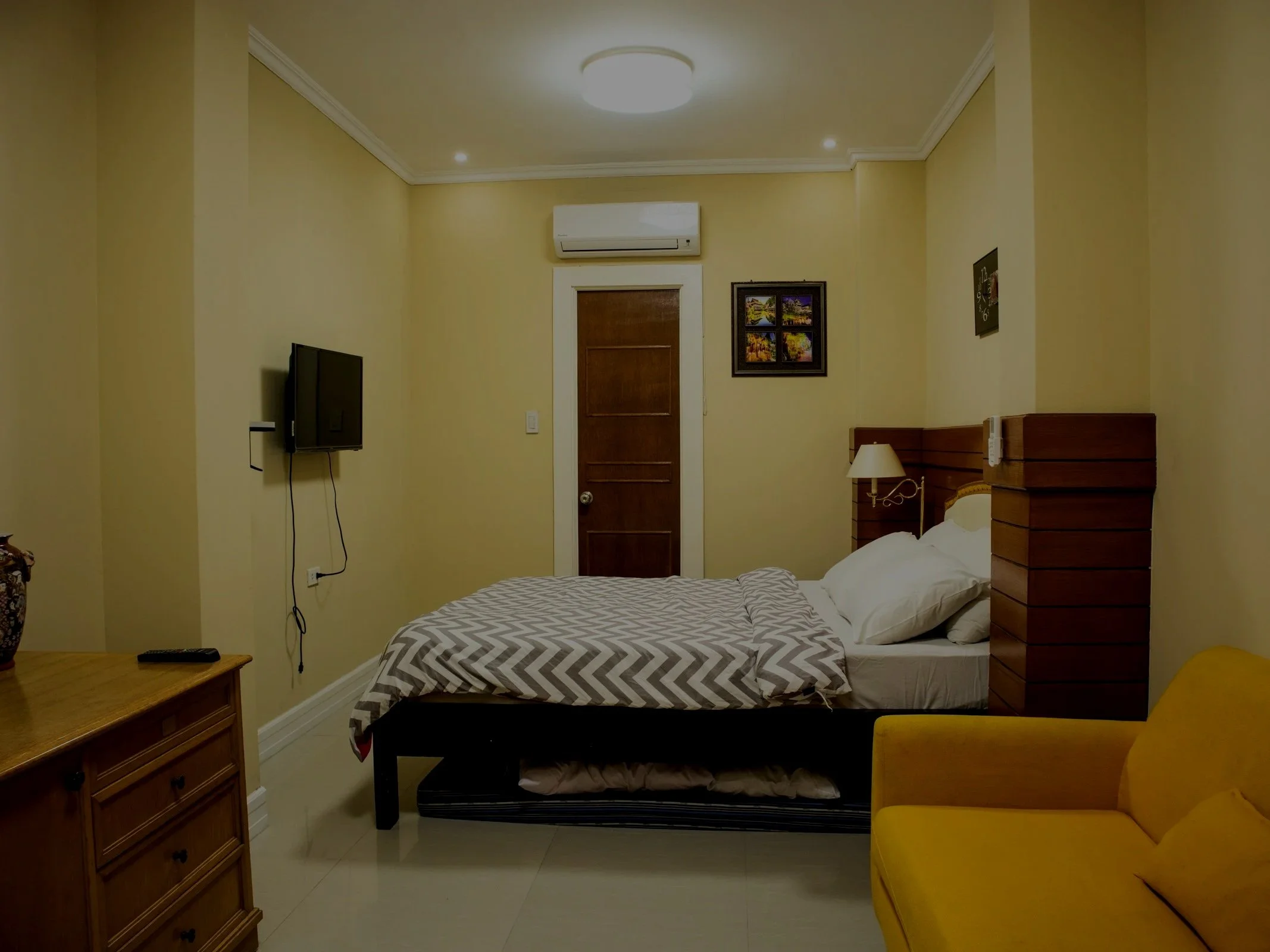 1 Queen-size bed (Foam bed added for extra guests)