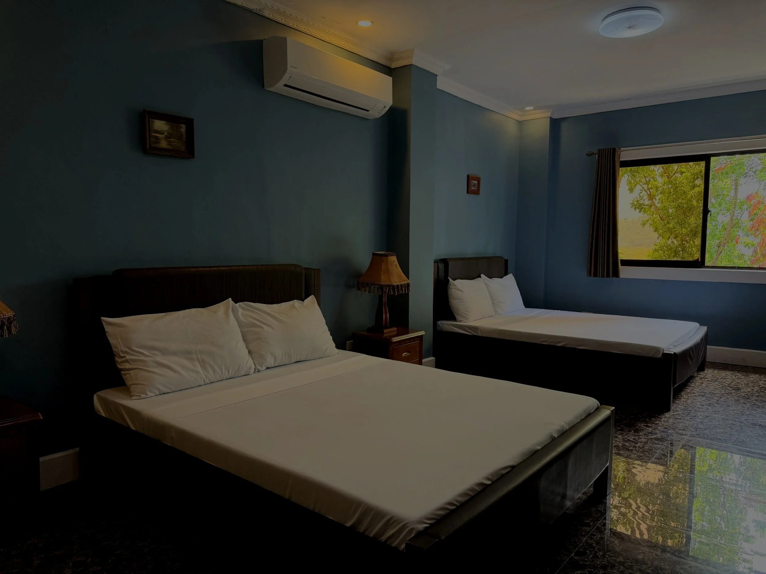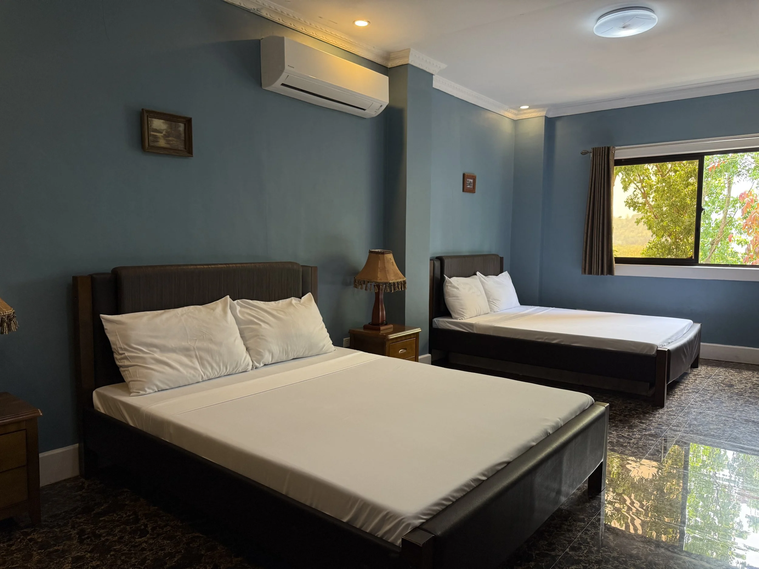 3 Queen-size beds (2 bedrooms; with additional sofa bed for extra guest)